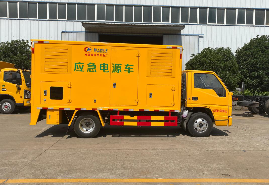 生產廠家——程力威牌工程救險車。該車機動性強,作為應急電源,具有固定式發電機組的優點外,還具有行駛性能良好、應急、移動能